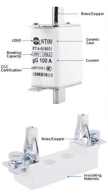 Přizpůsobený nízkonapěťový keramický držák pojistky NT00 AC 160A 500/690 V s vysokou vypínací schopností nabízí vynikající ochranu proti přetížení a zkratům při napětí až 690 V.
