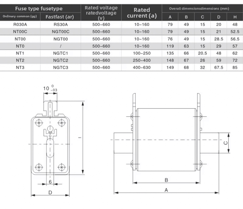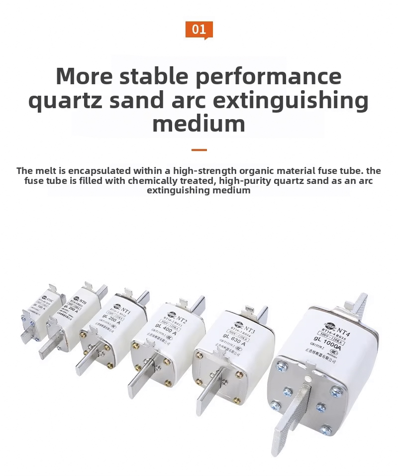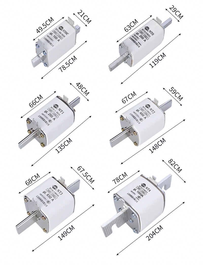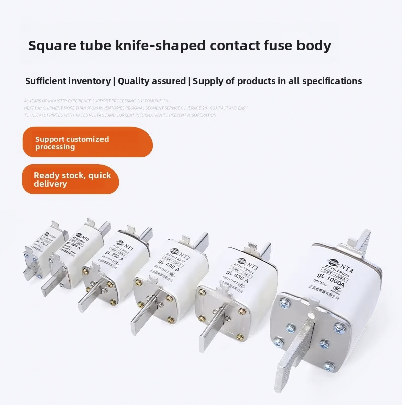 Čtvercové keramické pojistky řady NT/NH se běžně používají v průmyslových elektrických zařízeních, energetických systémech a elektronických zařízeních k ochraně obvodů před přetížením a zkratem.