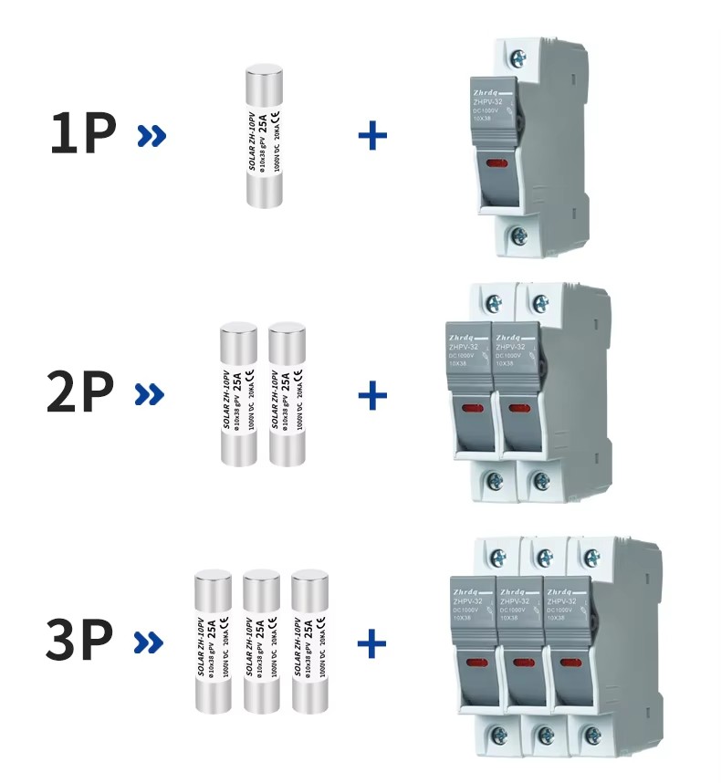K instalaci fotovoltaické pojistky do zařízení, obvykle používaného ve slunečním systémech, s velikostí 22 mm × 58 mm se používá k instalaci fotovoltaických pojistů do zařízení do zařízení, s velikostí jádra 22 mm × 58 mm. Základna ZHPV-125 1000V DC je vhodná pro standardní fotovoltaické pojistky a je obvykle vyrobena z vysokoteplotních materiálů, které vydrží pracovní podmínky ve vysokoteplotním prostředí. Má dobrou odolnost proti počasí a odolnost proti korozi a zajišťuje dlouhodobý stabilní provoz ve venkovním prostředí.